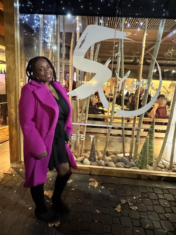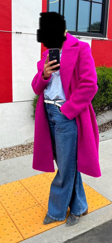 I LOVE this coat! I wear it open mostly as it does hang straight and I prefer more curves but it’s beautiful! My only regret is not buying this on a better discount but it sold out fast. The pink is magnificent in person and the pockets (once you unpack them) are nice and deep!