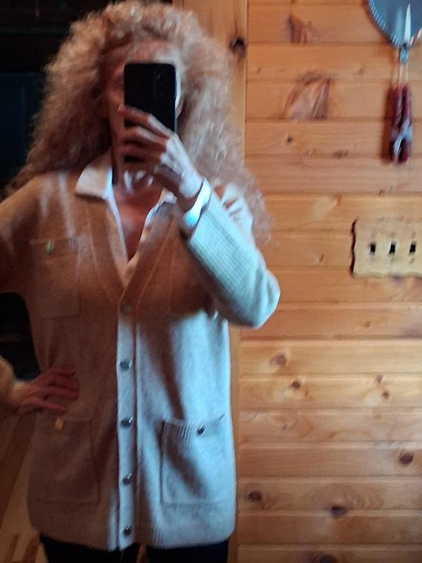 This I.N.C. cardigan is a versatile addition to any wardrobe, offering a polished look that transitions easily from casual to professional settings. While the fabric isn’t particularly soft to the touch, it provides reliable warmth and structure, making it an excellent choice for cooler office environments or layered outfits. The standout feature of this piece is its design with the gold button detailing adding a subtle yet sophisticated touch, elevating the overall aesthetic. The pockets are both functional and stylish, giving the cardigan a tailored, put-together appearance. Overall, this cardigan balances practicality and style. It’s ideal for anyone looking to maintain a refined look while staying comfortable throughout the day.