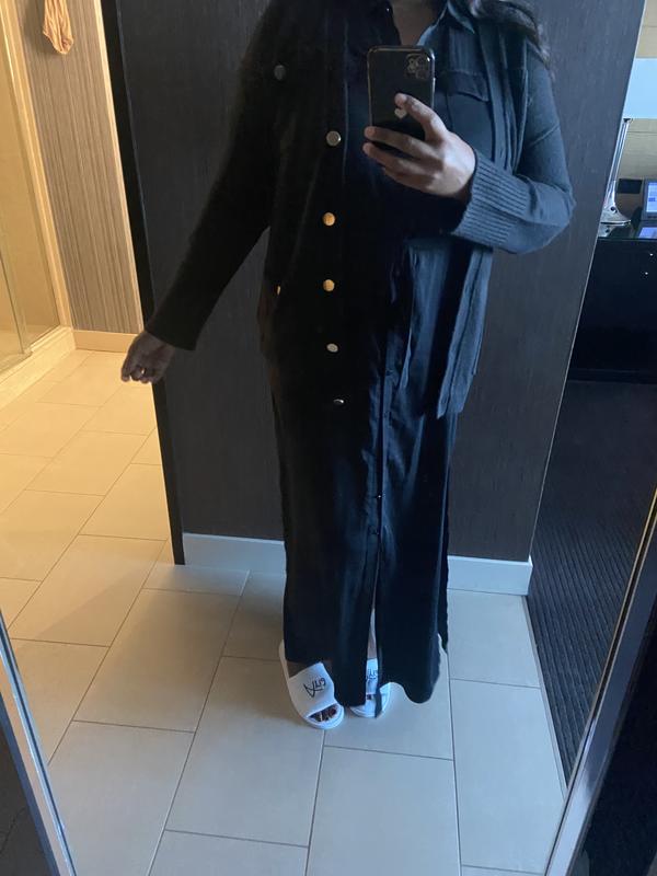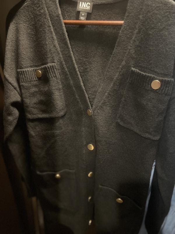 This I.N.C. cardigan is a versatile addition to any wardrobe, offering a polished look that transitions easily from casual to professional settings. While the fabric isn’t particularly soft to the touch, it provides reliable warmth and structure, making it an excellent choice for cooler office environments or layered outfits. The standout feature of this piece is its design with the gold button detailing adding a subtle yet sophisticated touch, elevating the overall aesthetic. The pockets are both functional and stylish, giving the cardigan a tailored, put-together appearance. Overall, this cardigan balances practicality and style. It’s ideal for anyone looking to maintain a refined look while staying comfortable throughout the day.