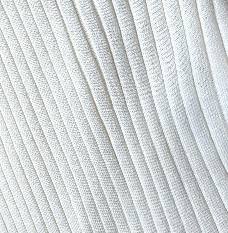 I love this ribbed sweater! The fit is super flattering and the ribbed knit gives it a nice, structured look. The fabric feels soft and comfortable, with just the right amount of stretch. The cream color is classic and easy to pair with anything from jeans to skirts. It’s perfect for layering or wearing on its own. Overall, it’s a versatile and stylish piece that works great for both casual and dressy looks.