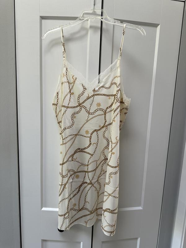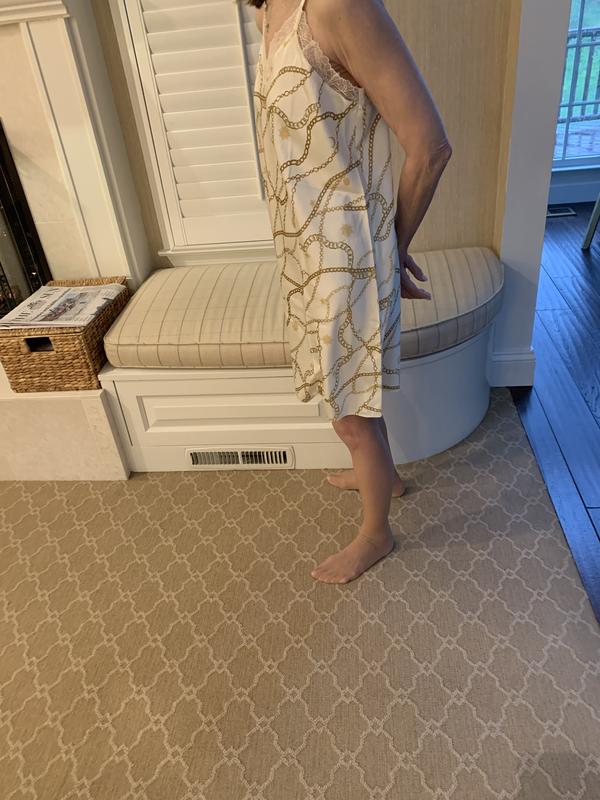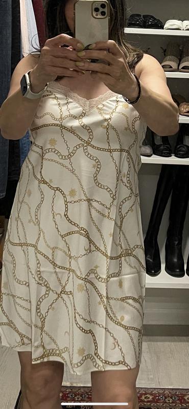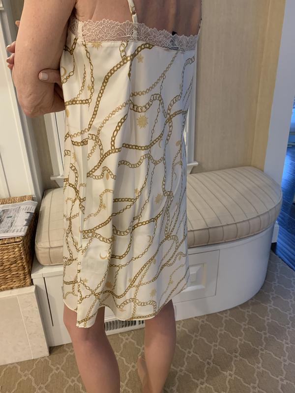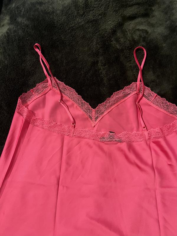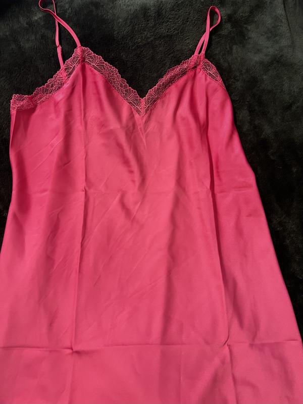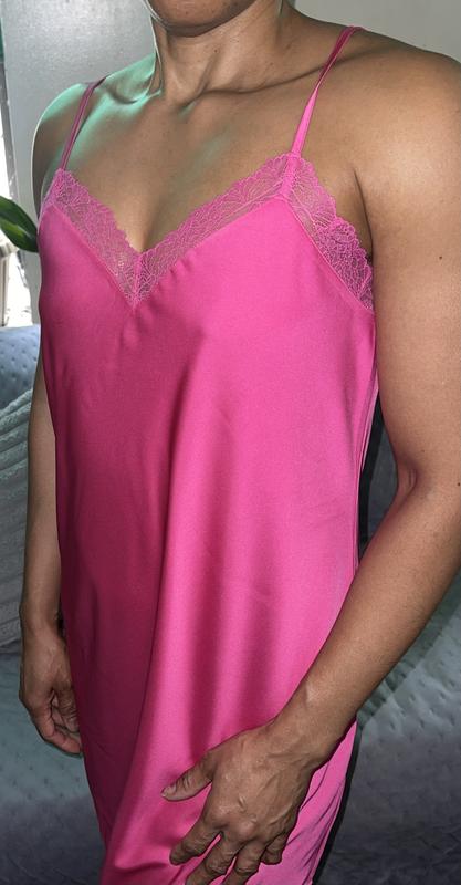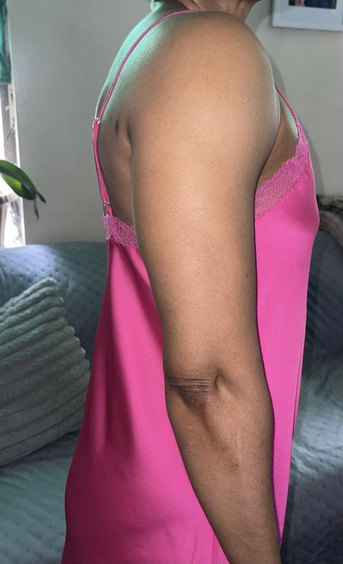 I purchased (on fantastic sale) 4 of these in black, super long maxis, love them. When the mini went on sale, I got 2. They are slighty boxy, they have well-made adjusters on straps, they aren't silk or satin, but they're rugged for washer/dryer, very light and comfy, with just enough lace to be pretty. The pink minis will be great for 138• degree summer! Yay!