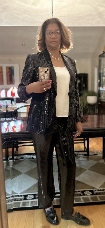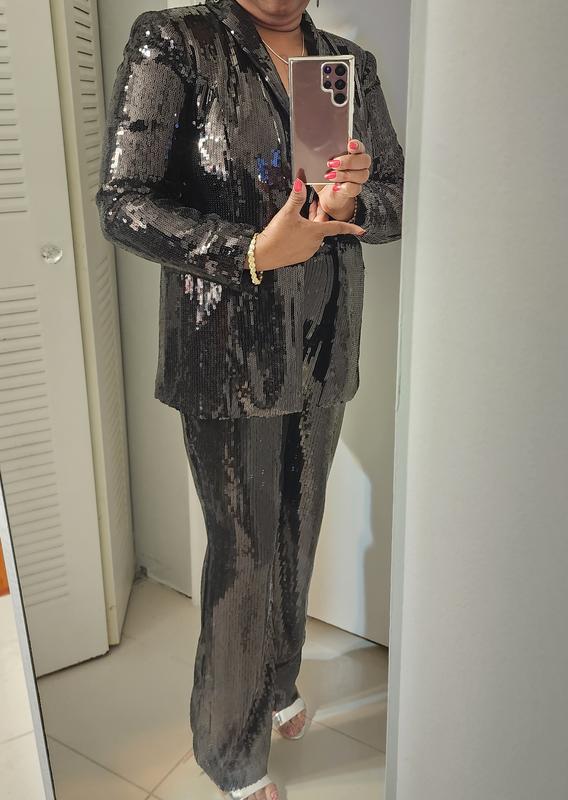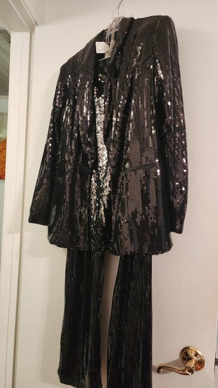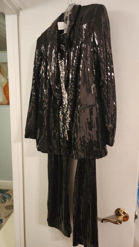 Please don't wear on bare skin, the sequin will rub against your skin. I wore the blazer with a sweater.