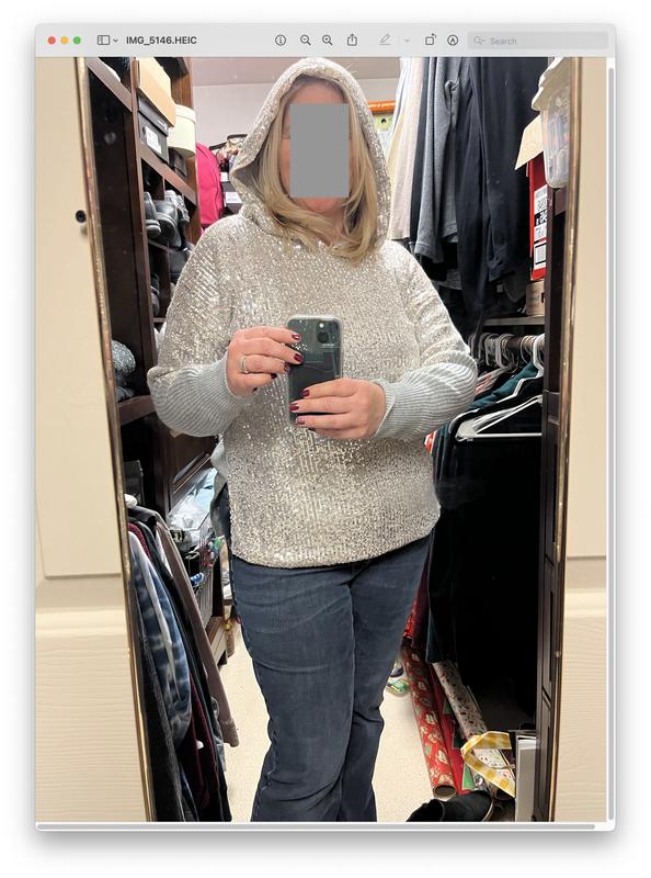 Beautiful sequin sweater, that I’ll be taking on an Alaska cruise.