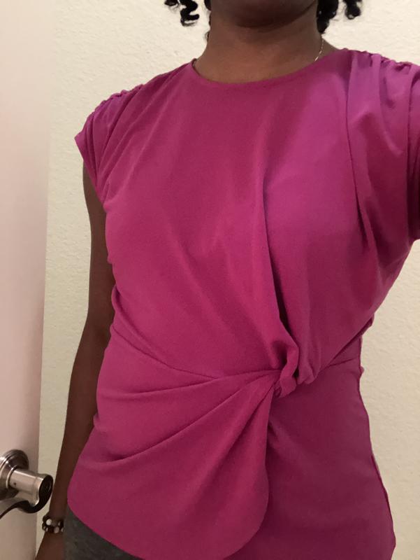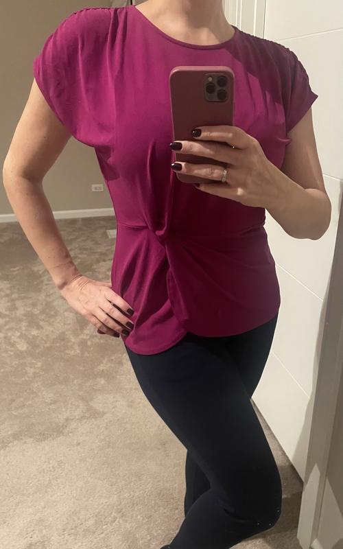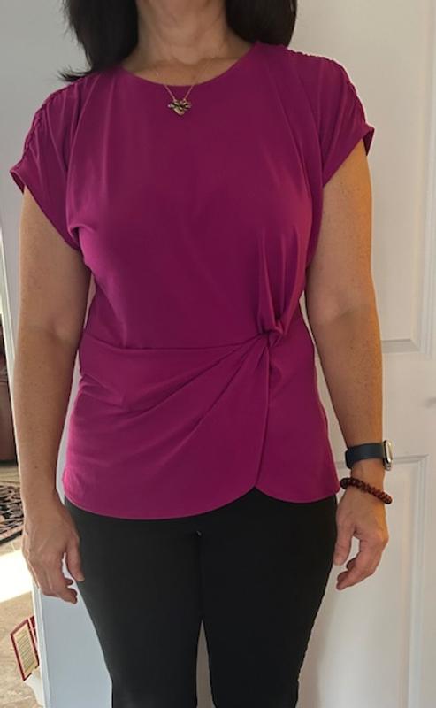 Web ID: 16468904Short sleeve twist front top is stretchy and very.