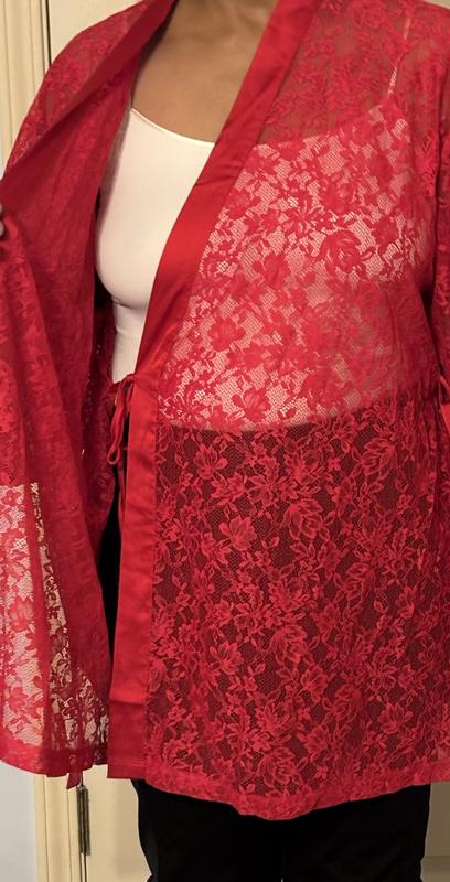 This robe is very flirty and feminine. It’s lightweight and comfortable. I would say this robe would be perfect for special occasions/holidays. The lace is very nice and the red color is vibrant. For me this is not an everyday robe. I sized up but I think this robe is true to size as it is over size on me. It’s still a lovely robe and I would highly recommend for special occasions.