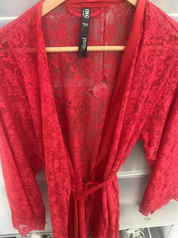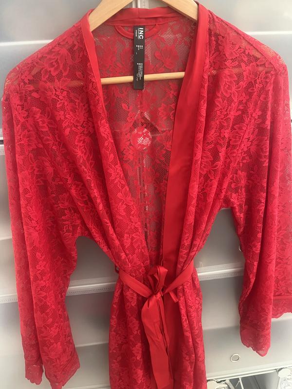 This night gown from Inc its Gorgeous. The color its a vibrant red very feminine. The lace fabric it’s beautiful and soft. Perfect for a special occasion or when getting ready to go out and feel sexy