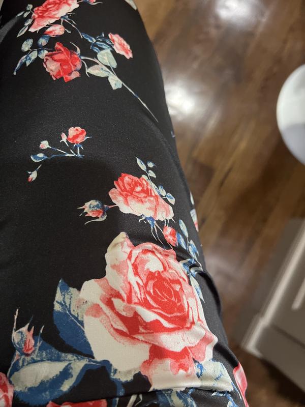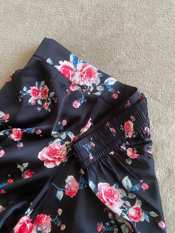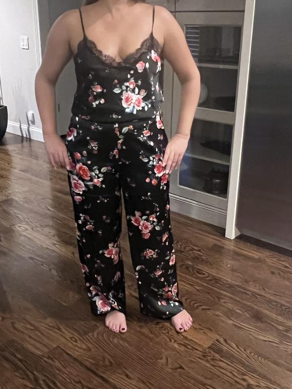 Pretty pajama set. The floral print is beautiful. The fit is just right and the look is very stylish. I machine washed and dried and it came out perfect, no ironing needed. The red flowers are a great look for Valentine’s Day!