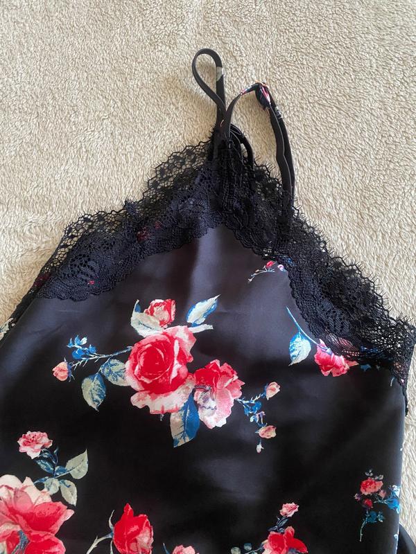 I have this outfit in the floral pattern which is very pretty. The satin material is very nice, feels good against the skin and washes nicely without wrinkling. It is great for lounging around the house and sleeping in. The lace trim around the top gives it a classy look. the elastic is wide around the waist which makes it comfortable. The adjustable straps on the top make it easy to change the location of the plunge in the front and back. I would recommend this set.