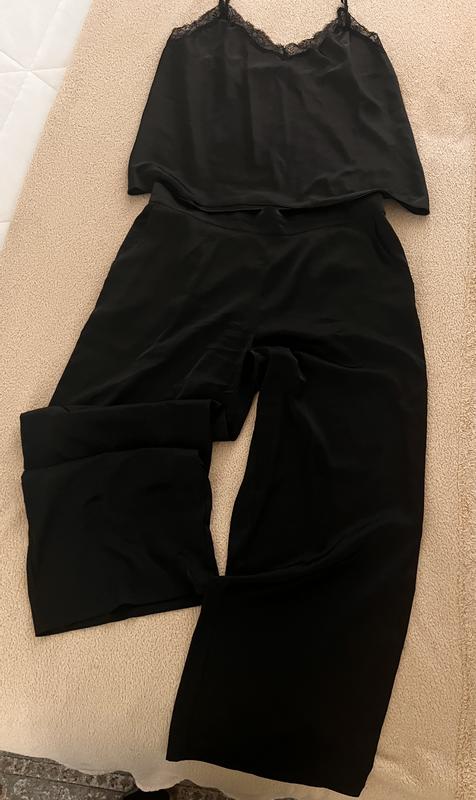 I absolutely love the lace trimmed tank and pants set. The lace detailing adds an extra touch to the top and the pink colour is lovely. The material is comfortable, the top fits perfectly and the relaxed fit of the pants is great. For a comfortable and cute outfit, I definitely recommend this set.