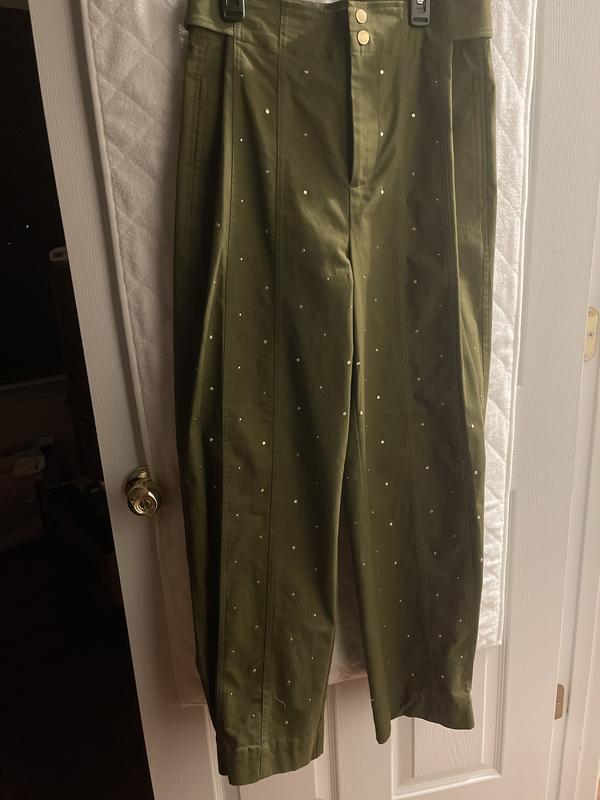 I loved the material and the gold studs but the gathered legs and waist gathering snaps all look weird if you want them unsnapped and made the pants look like MC hammer paints instead of nice dress pants. Not for me