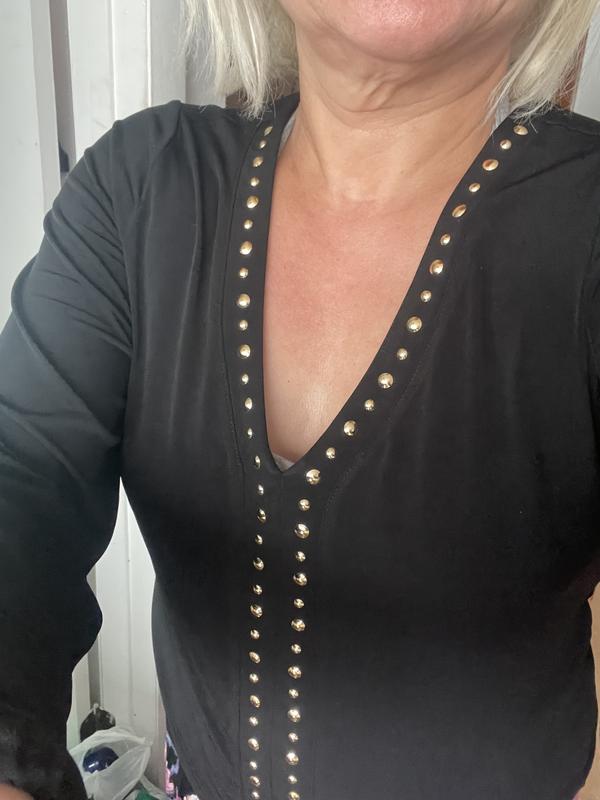 Beautiful dressy top. Fits like a dream! Perfect for work, and dinner afterwards. Minimal jewelry required. Add earrings and bracelet, and you are good to go!