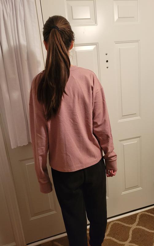 Love this sweatshirt. Perfect for when the temperature drops in Florida in the morning bit warms up in the afternoon. Not too heavy but not thin either. Also, I have a short torso and this is the perfect length when you don't want something a bit shorter but not a crop top.