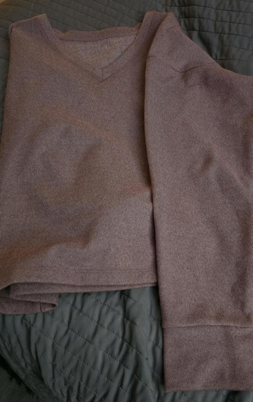Beautiful color and perfect for me. I like V necks and long sleeves. Very nice and not too thick.