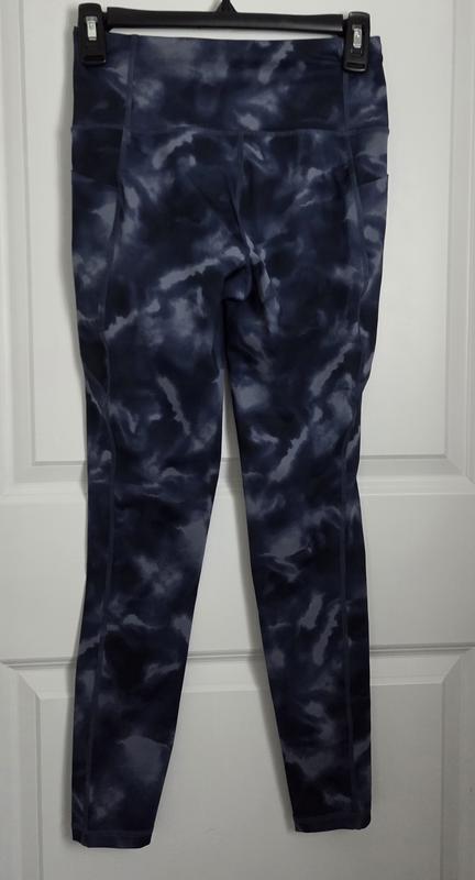 Varied print navy 7/8 leggings are so good for fall! Time to wear darker colors. The leggings are a little snug, but I think they will expand. Good for Zumba and Yoga workouts. Stretch!