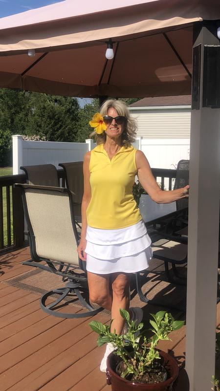 Skort looks so cute in the pics, flouncy layers, tts M fit, light pink color. Tho, on the body it makes normal hips appear huge! 😵💫 It emphasizes the hip width due to horizontal lines/layers at the widest portion of hip. Matches other pieces I bought and wear and love (zip jacket, bra v-neck top, etc) so sad that this design is a dud for me 😔 even tried wearing it backwards, still nah. My hips are actually smallish for body size (6/8) depending on brand. Prefer other bouncy skort styles with fewer flounces that fall lower; and especially those with the all around knife and box pleats! 🥰 Hoping ideology introduces a more flattering/less hip emphasizing, bouncy skort 💕 love the brand and many items 💯 Keep the winners coming, Macy’s