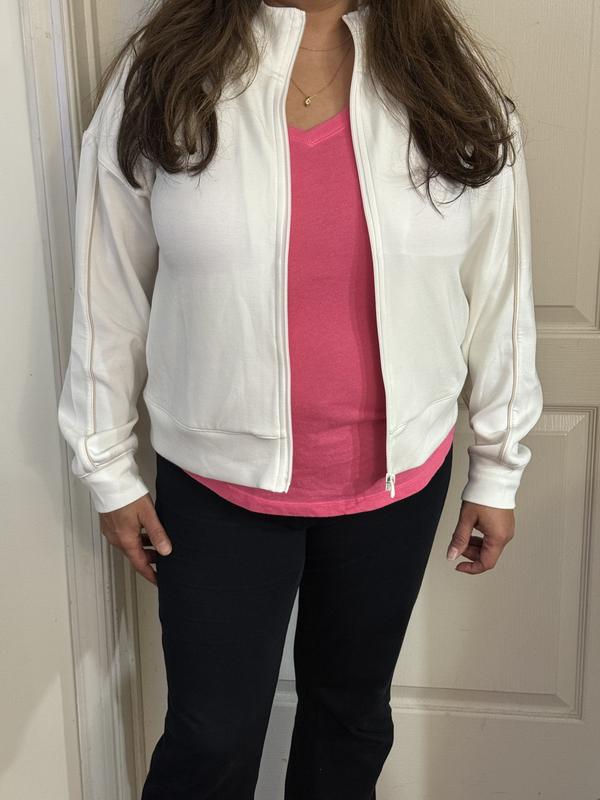 Womens Relaxed Butter Soft Funnel-Neck Zip Jacket
