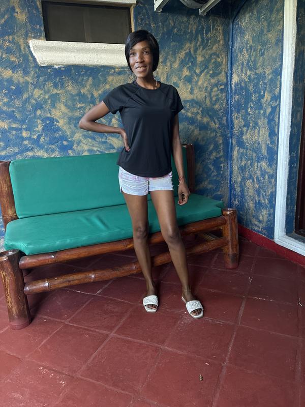 This Product is so comfortable, the material is so soft. The fit is not too tight or to lose. Great for working out or going out causally. It does not wrinkel, dries quickly, and is just so easy. I feel it's a perfect 10!