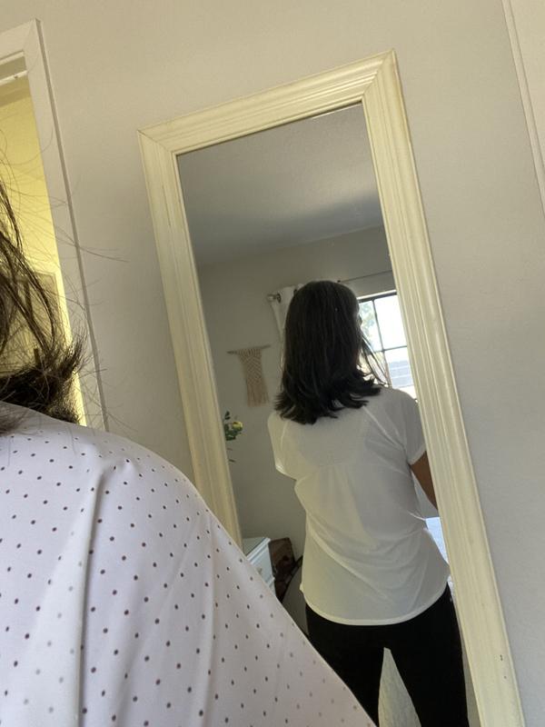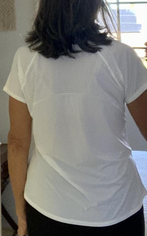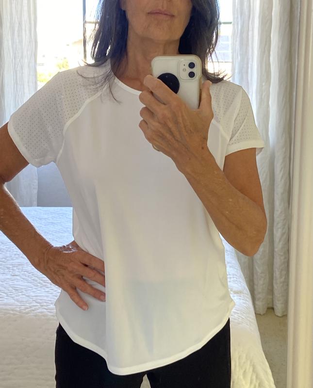Live, love, love this performance T! As a runner, I am always looking for something light and comfortable! In addition, I wore this T with jeans on a casual day and liked it just as much! Great for a work out or as part of your regular wardrobe… i chose the lilac color and will be shopping for it in black. Easy to wash and dry but needs to be removed from the dryer immediately to prevent wrinkles.
