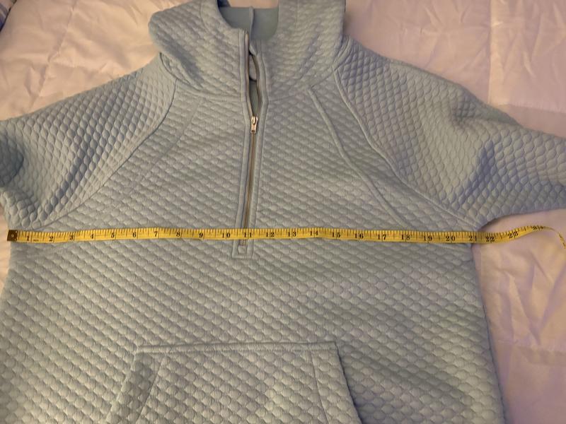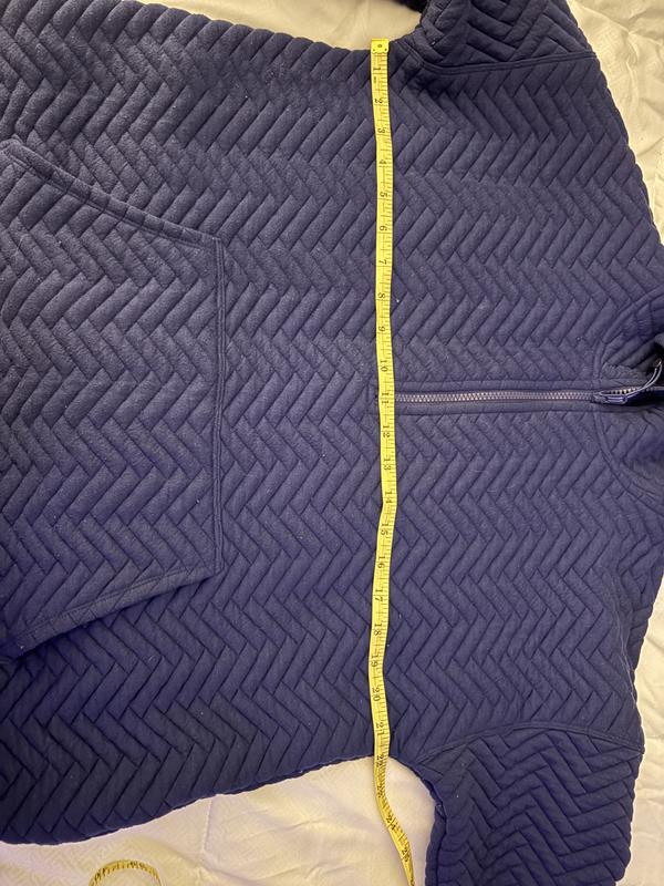 Very quality made hooded sweatshirt but I'm not a fan of the quilting texture. The aqua color is pretty. The sweatshirt even in an XS is wide in my opinion. It really depends on your figure. I like that it is a longer style.