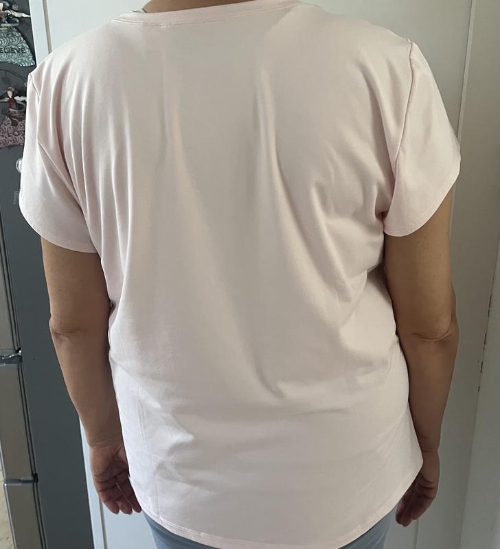 I could not believe how soft and buttery this workout top is . The color is such a beautiful pink . This top is very comfortable for working out in . It has good moisture control , feels great on your body and very easy to move without riding up . It’s great for everyday wear or working out . I like the way it’s cut .