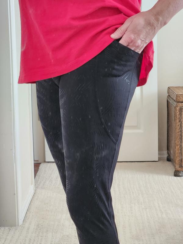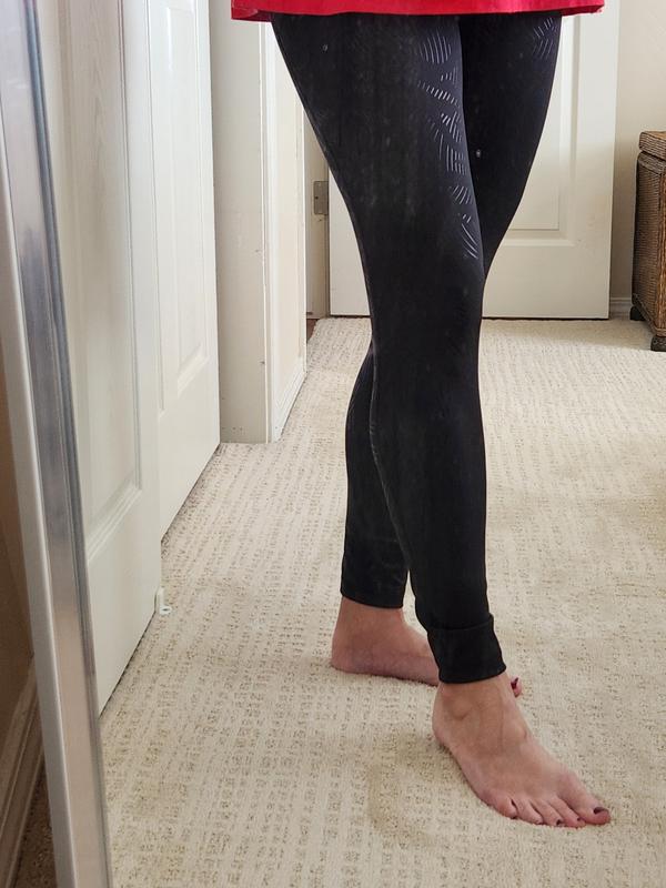 The legging are true to size, although I didn't feel the compression as much as other leggings I have. I'm 5'2" & the length fit at my ankle. I liked the zebra-print. The pockets seemed a bit too far back. When I first put them on, I heard the waistband popping a bit like the stitching was breaking.