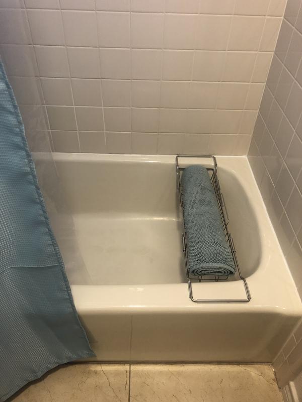 I love how it has plenty of room for items I need and it's not to big so it doesn't take up space in the tub and it fits perfect with the style of my bathroom. I also like how there's rubber on the handles so it doesn't slide on me
