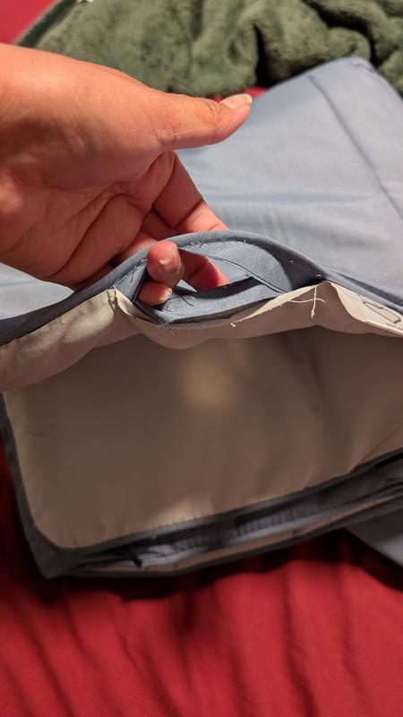 I just received my comforter and as I removed the plastic tag that should be removed before washing, the entire seam came apart. This should not happen to a brand new comforter.