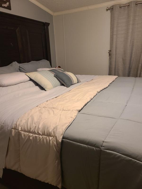 I ordered this without consulting my wife which of course was a mistake. I had recently ordered sheets from L&H that my wife raved about.Regarding the comforter even though it's reversible the colors white and beige don't work for winter so it is in the closet for now.