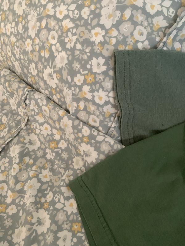 Beautiful and soft sheets. I was amazed how soft they were after washing since you are asked not to use softener! The colors are true to the description of floral eucalyptus since it is a grayish color background. However it does blend well with certain greens if that is what you will use. I only wish the pillowcases were”shams”as that would have been my preference.