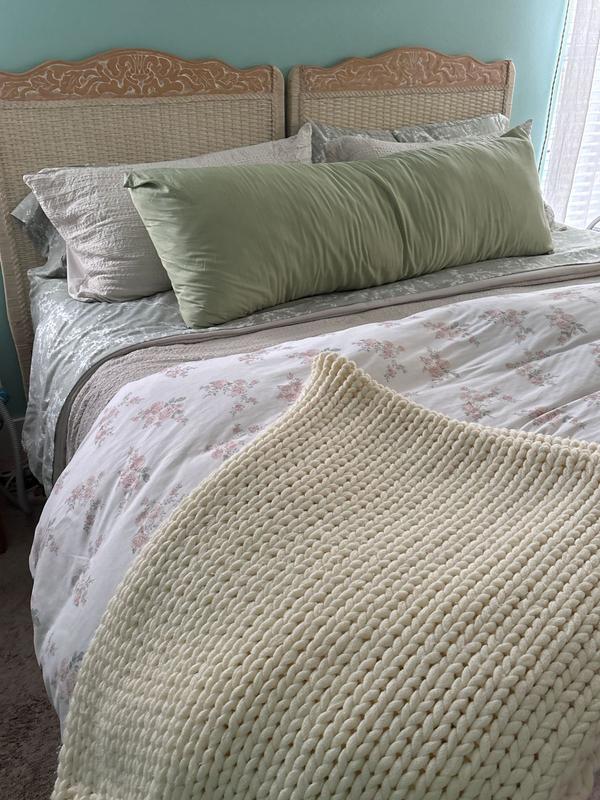 These are my new favorite sheets! Even my husband loves them, & he normally wouldn’t even notice. All my bedding is from L & H. Sheets, comforter, duvet & chunky knit.
