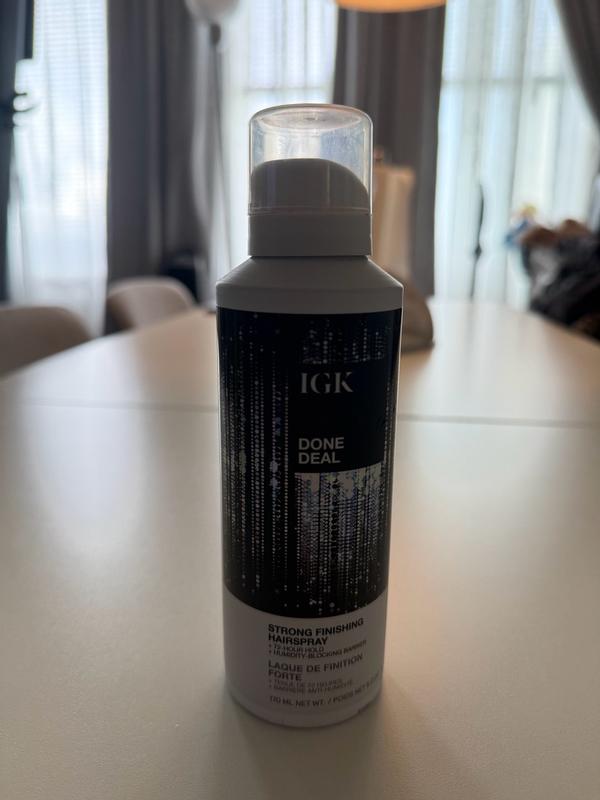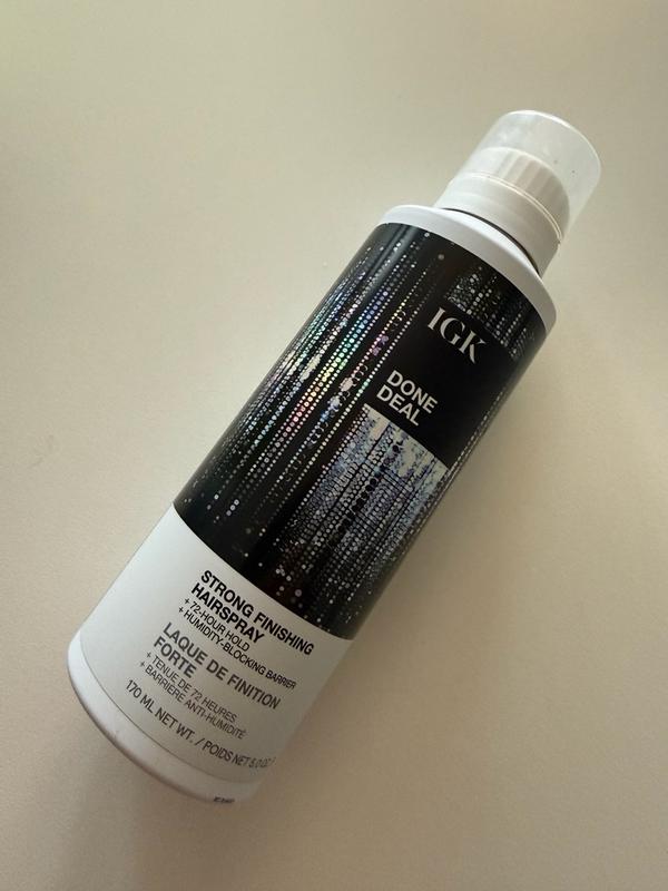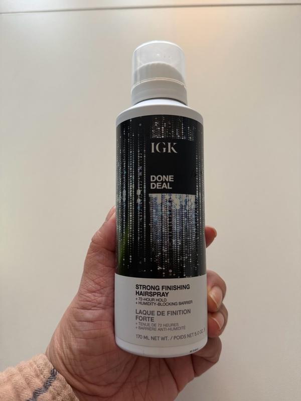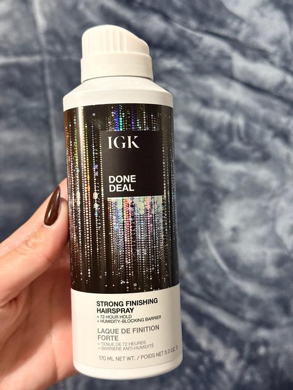 The IGK Done Deal Strong Finishing Hairspray offers long-lasting hold with a 72-hour locking barrier and humidity resistance. It keeps hairstyles in place without feeling overly stiff or sticky, making it great for all-day wear.