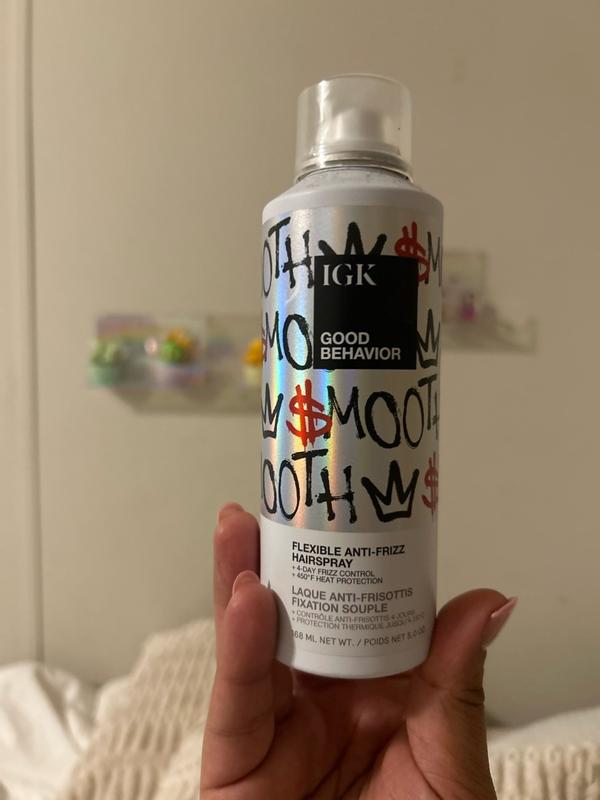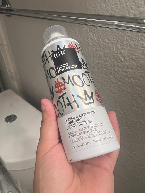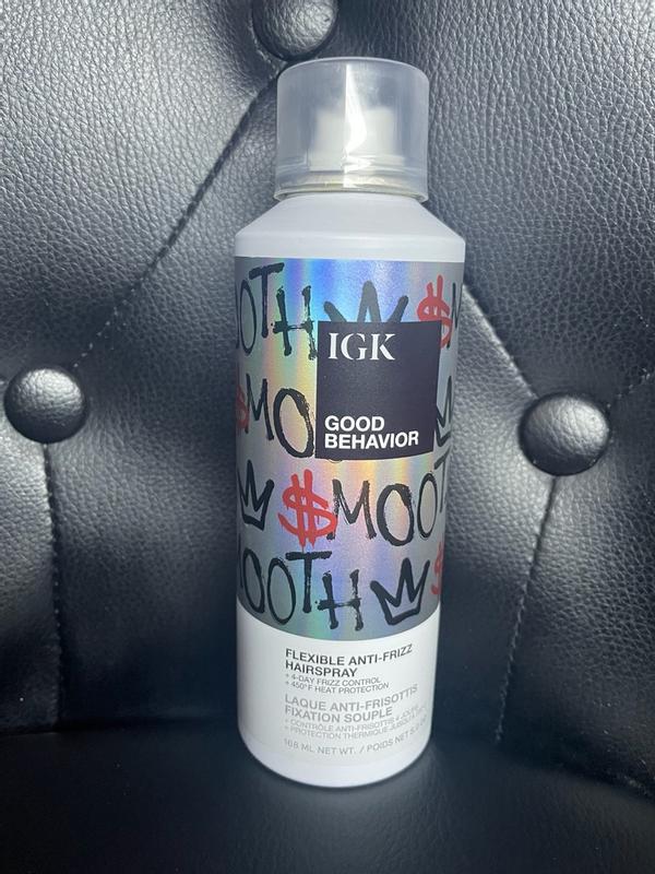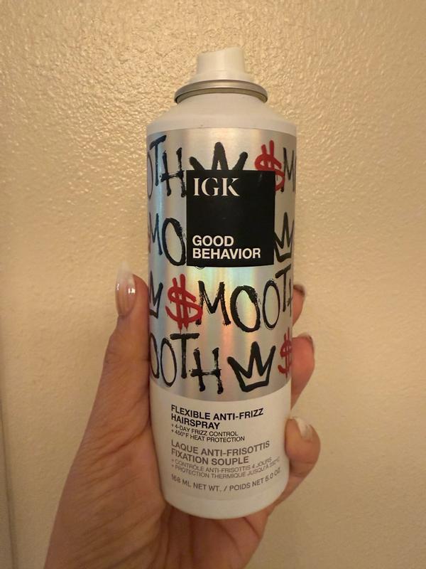 The IGK Good Behavior Flexible Anti Frizz Hairspray is one of my new holy grail products! The hold is great, the packaging is super cute as usual, and the smell is amazing!