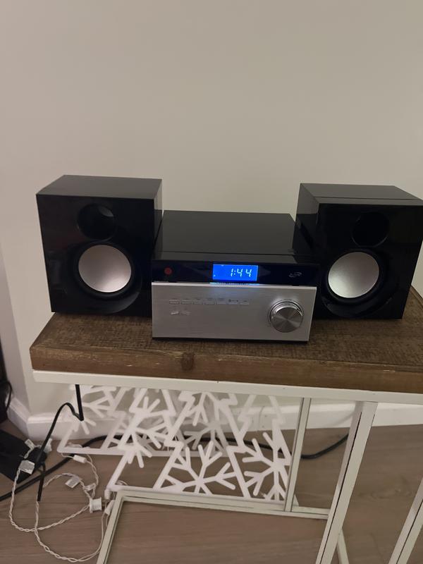 I bougth this music system for my cds and i could not be more happy, i love the fact that is also a radio and is Bluetooth, really compact is you planning to fit it in a little stand, really good sound, small but powerful, if you want a relative small system of audio with a acceptable quality for a affordable price.