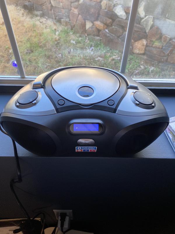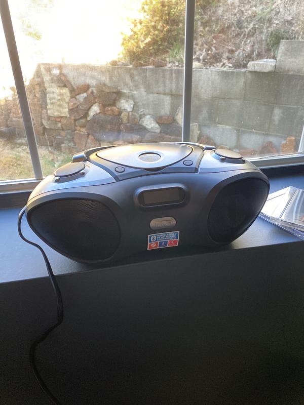 Great portable boom box. You have the option to play CDs, FM radio or Bluetooth your streaming service via mobile phone like Spotify. You can also plug into power or use batteries.
