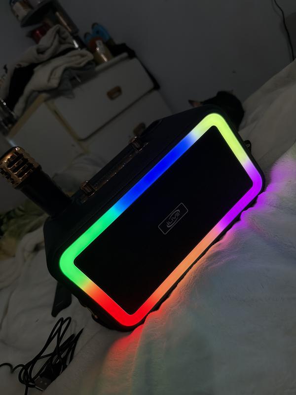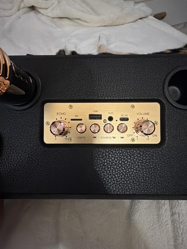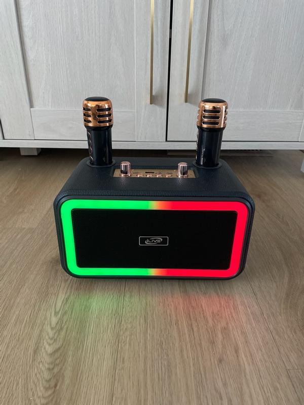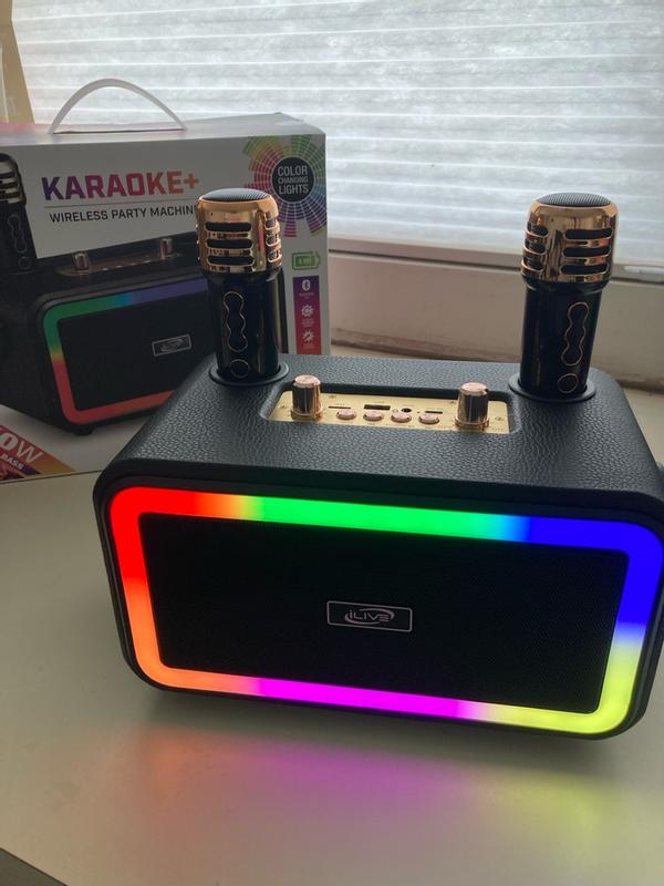 Wish I could give it 5 stars, but I can’t. It has so many things that I like but the microphones feel so cheap and don’t pick up voices as well as they should. I basically had to smush my lips into the microphone for it to catch my voice. It was either that or yell into it which honestly I was louder than the speaker at that point. The battery life, Bluetooth connection, and the many functions on the speaker it’s are so great and everything you could ask for, which makes the microphones seem that much worse. The colored lights are a cool feature and voice changing effects were also fun to play with. I just don’t understand why they didn’t give the mics more thought. They are so lightweight and flimsy that I accidentally dropped them many times. The loudness of the speaker surprised me honestly and I might just keep it around just to play music on.