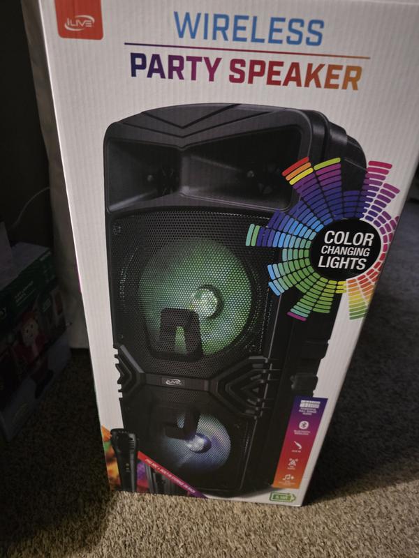 I just did buy this amazing speaker it’s pretty cool and the volume is pretty loud and good system with karaoke included and amazing different lighting with so many options on the playing lights,I totally recommend for Camping, back Patio, fishing or any where you want to hear some rally good music guys. Thank you for this product.