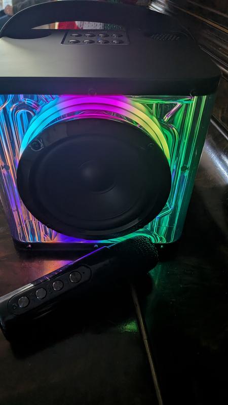 The iLive Block Party Wireless is honestly pretty fun if you just want something cheap that makes music louder and looks cool. The lights flash in different colors, and it comes with **two wireless mics**, which is kind of awesome for karaoke or messing around with friends. The sound isn’t like, amazing or anything — it’s fine, just not super bass-heavy or super loud. The battery lasts a few hours, but if you keep the lights on it drains faster, so don’t expect it to last all night. It feels more like a party toy than a “serious speaker,” but for the price it’s actually pretty good. If you just want something to make your room or hangouts more fun, it definitely does the job.
