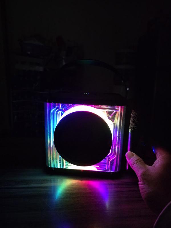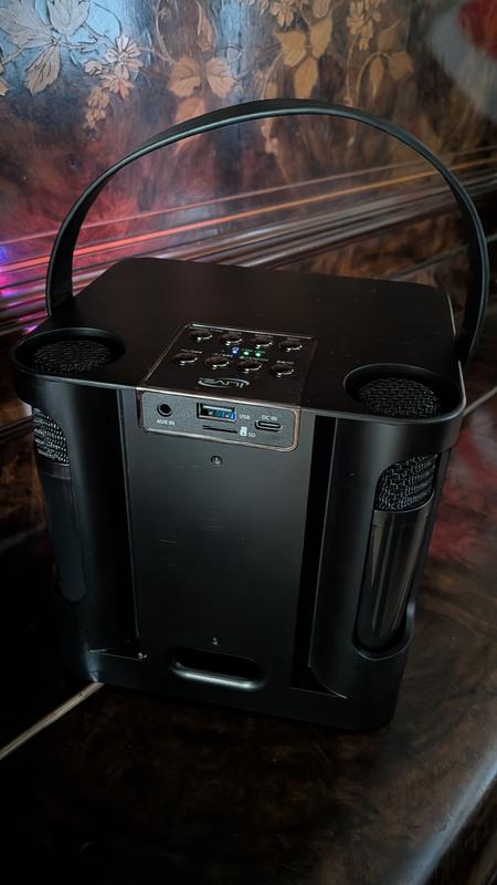 I received this as a present and it is by far the best speaker and microphone set I’ve ever had! It has two microphones, so it can be used for party karaoke. There is a place to hold the microphones so they don’t get lost which is something I’ve struggled with in the past with other brands. Also the lights on the speaker are pretty with different settings. I love how it comes with multiple cords to charge both the speaker and microphones. There a ton of cool settings for voice changing. My family and I have a blast with this. I’ve also sang on it at a party with a bunch of people and it sounds very clear and is loud. There are multiple ways to play music through the speaker. I love the setting that makes either the music a priority or the microphone a priority. I would recommend hands down 10/10 for this speaker/microphones for anyone looking for a way to karaoke or just listen to music. It is also not too big and has a handle. I love that this speaker doesn’t take up too much space but still sounds really good. Thank you for such an amazing product! It seems like there was a lot of thought and effort put into making it.