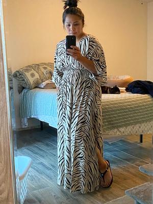 very comfortable beautiful dress, I always wear size Xl but bought this one size L and it fits perfect it very long thou I'm 5'3 I love long dress anyway.