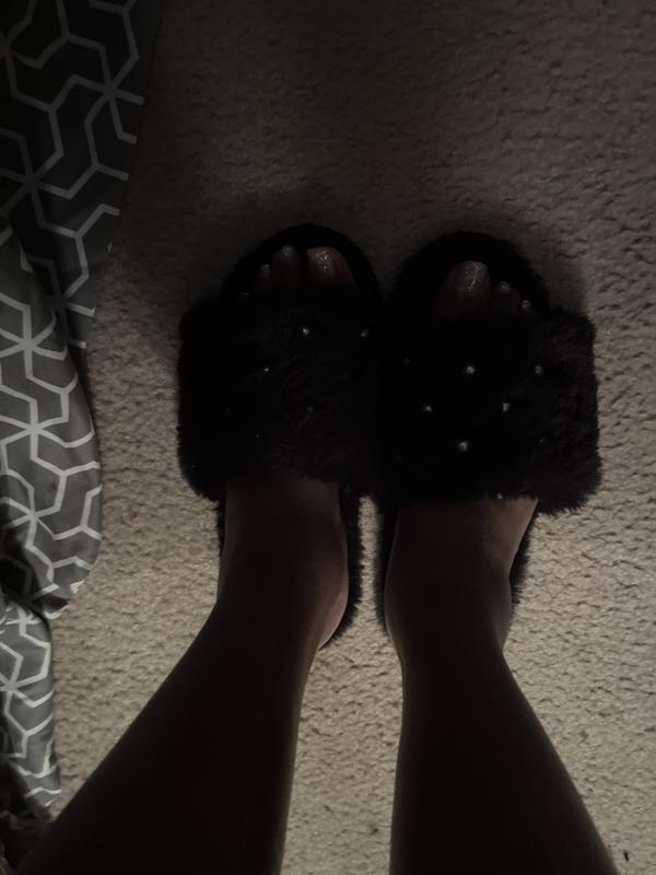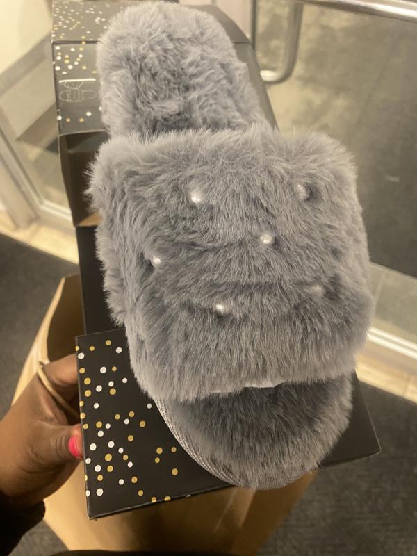 INC International Concepts Women's Imitation Pearl Faux-Fur Slide Boxed Slippers, Created for Macy's