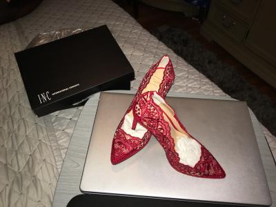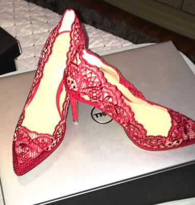 These shoes are beautiful, and look as if you were wearing lace around your foot even though it's just lace around a cream-colored base. They feel comfortable enough to wear all day at work, but I'm not sure if I could do a night of dancing in these stilettos! They run true to size too.