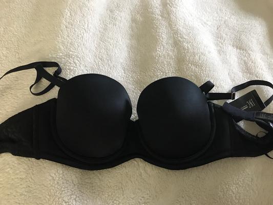 Good deal with promos for classic strapless bra that is convertible! True to size in the cup, band runs tight, which a strapless will sometimes have a different fit. Side lace detail is nice. Smooth fit on cup. Nice staple to have in the wardrobe!