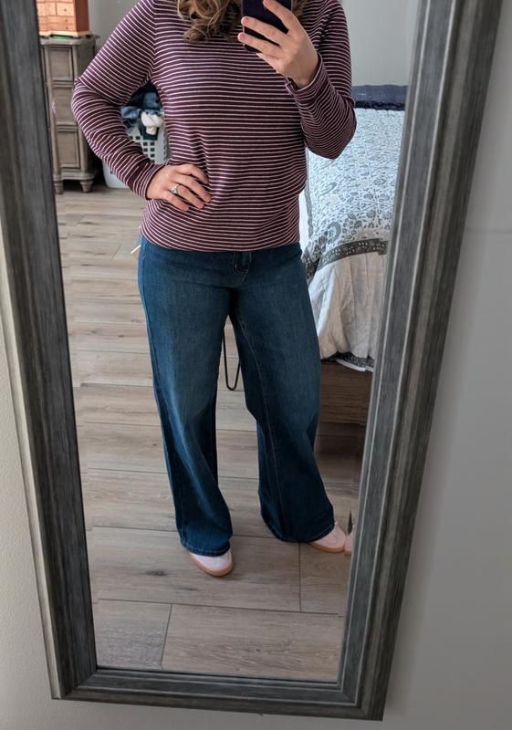 I love the way the jeans fit. The leg is a little wider at the bottom than I had anticipated and they are a little long but then most jeans are for me. Perfect new pair of jeans!