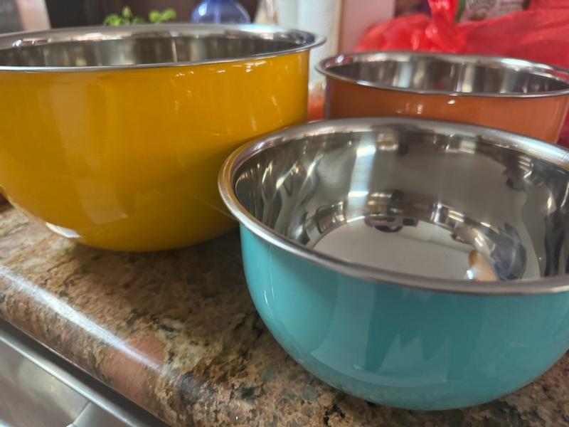 Stainless steel mixing bowls are an essential addition for any home cook. Their durability, versatility, and ease of use make them a superior choice over plastic or glass heavy alternatives. Plus, modern sets come in happy colors that add a fun and stylish touch to my kitchen!
