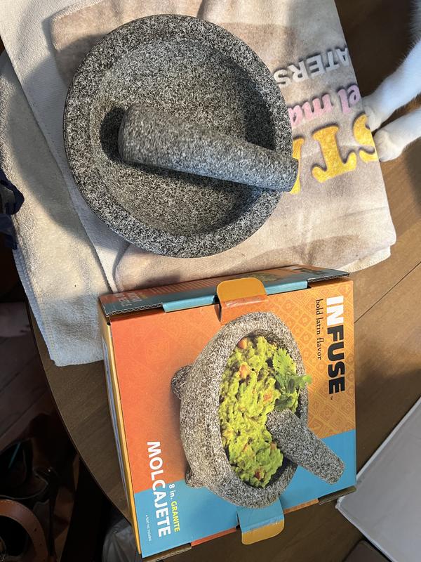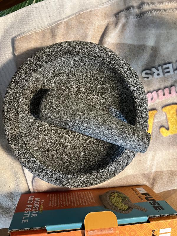 As a home cook, I've recently had the pleasure of using the INFUSE 8-inch Granite Mortar and Pestle, and I must say, it has revolutionized my culinary experience. Crafted from high-quality granite, this kitchen essential embodies durability and elegance, making it a standout addition to any kitchen countertop. The size of the mortar and pestle is ideal for both small and large grinding tasks, allowing me to effortlessly crush herbs, spices, and other ingredients to perfection. Its substantial weight ensures stability during use, preventing any unwanted slippage or accidents. Furthermore, the easy-to-clean surface and simple maintenance make it a practical choice for everyday use. Unlike other materials, the granite surface is resistant to stains and odors, ensuring a hygienic cooking environment and preserving the authentic flavors of each preparation. Overall, the INFUSE 8-inch Granite Mortar and Pestle has become indispensable.