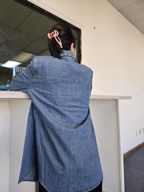 As a busy mom, comfort and versatility are everything to me, and this denim shirt checks all the boxes. The fabric feels soft but still structured, so it looks polished without feeling stiff or heavy. The medium wash is flattering and easy to pair with leggings, jeans, or even thrown over a dress. I love that it works perfectly for everyday mom life — school drop-offs, errands, or casual outings. The fit is true to size, giving enough room to move comfortably while still looking put together. The quality feels well made and durable, which is a big plus for moms. Definitely a staple piece I’ll be reaching for often.