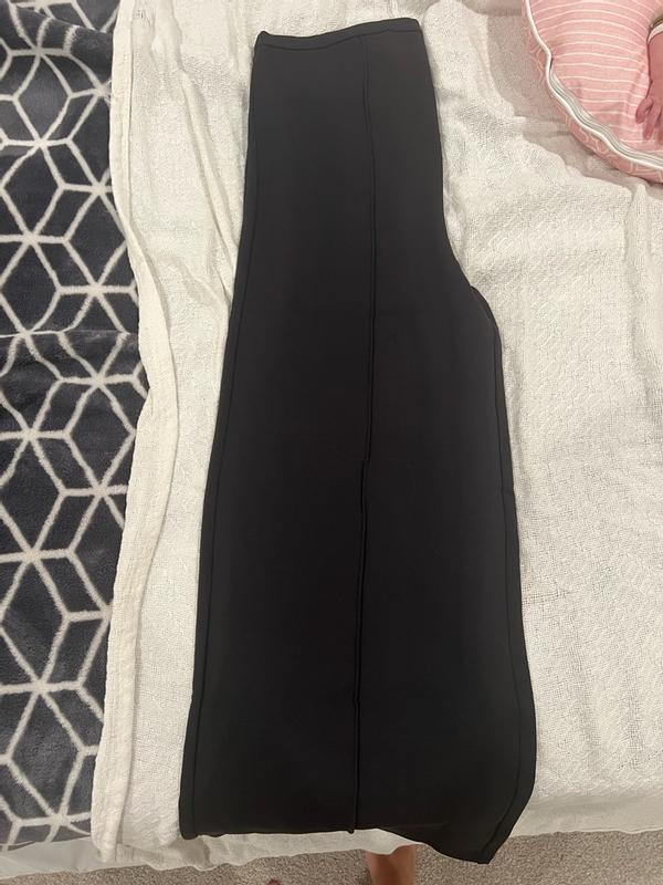 These maternity ponte flare pants are incredibly comfortable and flattering. The fabric is thick and opaque, so nothing shows through, and it has just the right amount of stretch without losing its shape. The waistband feels supportive but not tight, and the pants don’t sag throughout the day. I love how polished they look while still feeling cozy enough for everyday wear. Perfect for dressing up or down during pregnancy.