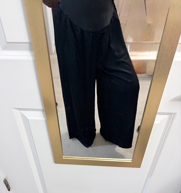 The pants are absolutely gorgeous. They’re super flowy and makes you tall somehow. They feel silky soft and I’m in loveeee. Maternity stuff is usually really boring but these pants are really chic with extreme comfort!!!