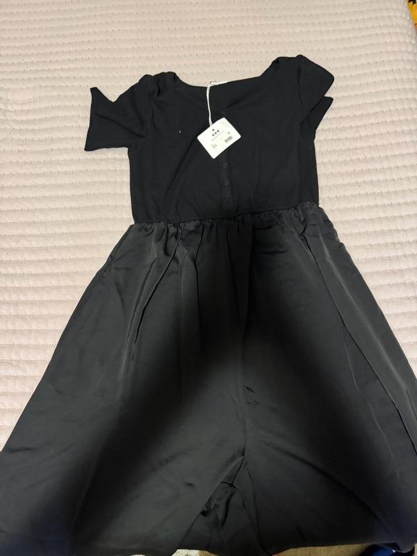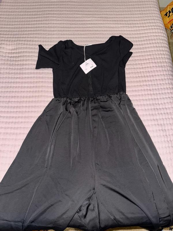 The material is great and very stretchy and comfortable. It has some good weight to it! The romper is very easy to take on and off and will grow with you if you choose to wear as maternity,postpartum or even just everyday wear. I love how you can dress up or down this outfit