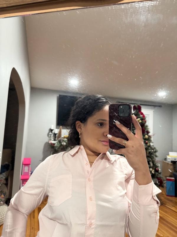 I received this shirt for testing purposes, and I’m genuinely impressed with the quality. The fabric feels soft, lightweight, and comfortable—perfect for everyday wear or layering. Even though it came a bit wrinkled (typical for cotton poplin), it irons out nicely and keeps a clean, crisp look throughout the day. The fit in size XS is flattering without feeling tight. I also appreciate the small details like the structured collar, chest pocket, and slight gathers at the shoulders, which make it look more elevated than a basic button-down. It’s versatile enough for work, casual outfits, or pregnancy styling, which Ingrid & Isabel is known for. Overall, this is a staple wardrobe piece that feels well-made and worth having. I’d definitely recommend it!
